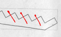 Kształt wangi został wcześniej odrysowany na wstępnie sklepionym elemencie i wycięty za pomocą pilarki ręcznej (zdjęcie z prawej) i wyrzynarki (zdjęcie lewe) po linii skośnej odkreślenia.(kształt oczywiście na podstawie szablonu ploterowego).