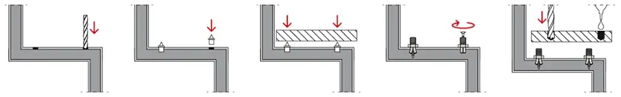 Przekładamy pierwszy trep na kołki znaczące i lekko uderzamy od góry ręka by naznaczyć, gdzie mają być wiercone otwory montażowe w stopniu schodowym.
